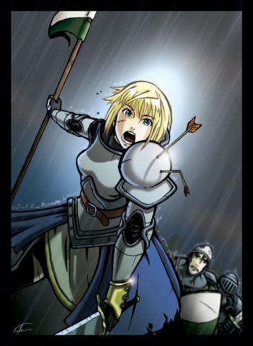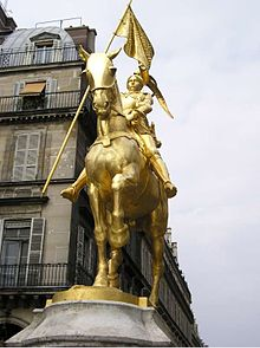 NewsLogo-MusterJeanne d’ Arc mazJeanne d’ Arc mazSchon wieder eine Heilige?Ja, doch, denn bemerkenswert ist sie ja nun auf jeden Fall: Sie lebte von 1412 - 1431 in einem von Engländern besetzten Frankreich,stammt aus Lothringen (Domremy) und Ihre Eltern waren eher wohlhabende Bauern.Sie als “charakterstark” zu bezeichnen, ist eher geschmeichelt, eigensinnig würde es wohl besser treffen.Schon als Kind war diese Eigenschaft sehr ausgeprägt, und ihre Eltern hatten es nicht immer nur leicht mit ihr.Aufgewachsen in den Wirren des “hundertjährigen Krieges”, war sie kein typisches Kind ihrer Zeit.So widersetzte sie sich beispielsweise einer Verheiratung, indem sie in einer Vision erfuhr, dass ihr Widerstand gegen eine Heirat erfolgreich sein würde, und zieht konsequent vor das geistliche Gericht, um eine solche Heirat zu verhindern.Eine Vereinbarung einer Heirat in diesem Alter war in dieser Zeit ehehr ein Zeichen von Verantwortung der Eltern, nicht von Bevormundung, also absolut nichts ungewöhnliches.Ihr erschienen zunächst die heilige Katharina, dann zusätzlich der Erzengel Michael und die heilige Margareta.Diese Visionen begleiteten ihren Weg, und liessen sie recht ungewöhnliche Dinge für ein Mädchen aus dieser Zeit tun:Sie erhielt den Befehl. Frankreich von den Engländern zu befreien, und auch recht genaue Angaben,wie dies zu bewerkstelligen sei.Je nach Quelle bedurfte es dazu einer Verkleidung als Mann (inkl. Haarschnitt und Klamotten), oder aber nur eines sehr männlichen, also entschiedenen Auftretens1429 unternahm sie je nach Quelle 1-3 Versuche, eine Audienz beim Stadtkommandanten der Festung Vaucouleurs zu bekommen. Ihre Eltern wussten davon nichts.Dort wurde “ihr Glaube geprüft”, andere behaupten, ihre Jungfräulichkeit hätte zu ihrer Glaubwürdigkeit beigetragen, Diese Prüfung dauerte mehrere Wochen und führte zu einer Anerkennung der “Göttlichkeit” ihres Auftrages. In wieder anderen Quellen fand diese Überprüfung erst am Hofe statt, aber über die Ausführlichkeit der Untersuchung sind sich die Berichte einig.Ihr Aufbruch erfolgte im Februar 1429Sie wurde also mit einer Eskorte und einem Begleitschreiben nach Chinon zu Karl VII geschickt. Ihr visionärer Auftrag war, diesen (Karl VII) zur Krönung nach Reims zu bringen, Während dieser Reise ereignete sich die Niederlage der Franzosen in der “Heringsschlacht” und dem Rückzug der Ritter aus dem belagerten Orleans.Die Ziele, die ihr durch die Visionen aufgetragen wurden, lauten:Orleans von der Belagerung befreien,Karl VII in Reims krönen lassenBefreiung von ParisRückkehr des Herzog von Orleans aus engl. Gefangenschaft.Sie hat ein Empfehlungsschreiben von Baudricourts dabei, und erreicht den Hof KarlsVII.Sie wird am Hof empfangen und (siehe vorher) ihre Heiligkeit geprüft, und dann wird sie ausstaffiert und mit der kämpfenden Truppe nach Orleans gesandt, als Mitglied eines Versorgungstrupps getarnt, mit dem Auftrag, diesen Versorgungszug in die belagerte Stadt zu bringen, was ihr auch gelingt.Angeblich war sie wie ein Ritter ausgerüstet, mit Schwert, Rüstung und Pferd, Sie reitet mit dieser Truppe wiederum durch vom Feind besetztes Land und erreicht tatsächlich Orleans.Die Beteiligung an Kampfhandlungen wird von allen Quellen bestätigt, allerdings gehen die Meinungen auseinander, wie aktiv sie in das Kampfgeschehen eingriff, einige Quellen nennen sie schlicht und einfach das “Maskottchen”, weil sie mit ihrem “göttlichen” Auftrag eine ermutigende Wirkung auf die Soldaten hatte. Sie selbst berichtete, zwar sogar an vorderster Front gestanden (geritten) zu haben, aber weder sei sie zu Schaden gekommen, noch habe sie jemand ernsthaften Schaden zugefügt.Die französischen Truppen können den Engländern immerhin so schmerzhafte Verluste zufügen, dass diese Anfang Mai 1429 die Belagerung von Orleans abbrechen und sich zurückziehen. Das Gerücht, dass die Engländer sich vor ihrer Erscheinung so gefürchtet haben, dass sie den “Gottesauftrag” ernst genommen haben, und deshalb aufgegeben haben - na, ja, das kann man getrost als heroische Aufbauschung verstehen. Auch die Rekrutierung von Räubern, sowie deren Verwandlung zu heroischen Soldaten mag ein Gerücht sein, nach anderen Quellen wurden ihr die Truppen zur Verfügung gestellt, aber, ich geb’s zu: es klingt doch viel besser. Aber ein Name eines berüchtigten Räubers spukt hier durch die Geschichte:Étienne de Vignolles, besser bekannt als La Hire („der Wilde“). Und dabei, oder bei der anschliessenden Rückeroberung von Orten entlang der Loire soll sich die folgende Situation zugetragen haben:Von einem Pfeil getroffen, blieb sie bis zum Ende der Schlacht an vorderster Reihe. Dies geschah angeblich am 7.Mai 1429Auf jeden Fall ermutigte ihr Erfolg mit dem Proviantzug die eingeschlossenen Franzosen so weit, dass sie einen Ausfall wagen und über die Belagerer triumphieren.Nach diesem Erfolg möchte sie sofort den nächsten Punkt auf ihrer Liste angehen, die Krönung, aber die Pläne der Franzosen sind andere:Die Truppen ziehen entlang der Loire und erobern einige strategische Orte zurück.Wie gesagt, bei welcher dieser Gelegenheiten sie ihren Mut und ihre Tapferkeit unter Beweis stellte, da gehen die Meinungen auseinander, aber ein solches Verhalten eines jungen Frau erscheint, egal zu welchem Anlass, doch als sehr bemerkenswert.Der Erfolg ging so weit, dass bis Juli die Engländer aus allen wichtigen Burgen südlich der Loire vertrieben waren.Und nun endlich konnte am 17 Juli die Krönung KarlsVII wie vorgesehen in Reims (in der Kathedrale) stattfinden, und unsere Heldin bekam einen Ehrenplatz neben dem Altar, dargestellt stolz mit der Siegesfahne in der Hand. Hiervon gibt es sowohl zeitgenössische wie auch sehr viele später entstandene Bilder und Darstellungen, je nachdem mehr oder weniger heroisch übertrieben. Aber auch wenn einiges ein wenig übertrieben wird, was mit ihr zusammenhängt, so gibt es doch ein paa