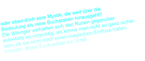 Warum man bei Runen wissen sollte, was man da tut - -eine Geschichte:„Als Egil und die Seinen sich gesetzt hatten und aßen, da sah Egil, dass ein Mädchen krank auf dem Querbett lag. Egil fragte Thorfinn, wer das Weib sei, das dort so krank liege. Thorfinn meinte, sie heiße Helga und sei seine Tochter – ‚sie hat schon lange krank gelegen. Sie litt an Auszehrung. Keine Nacht schlief sie und war wie wahnsinnig.‘ ‚Habt ihr irgendwelche Mittel gegen die Krankheit angewendet?‘ fragte Egil. Thorfinn sprach: ‚Runen sind geritzt worden, und ein Bauernsohn ganz in der Nachbarschaft ist’s, der dies tat. Es steht aber seitdem viel schlimmer als vorher. Kannst du, Egil, etwas wider solches Übel tun?‘ Egil meinte: ‚Möglich, dass es nicht schlechter wird, wenn ich mich daran mache.‘ Als Egil gegessen hatte, ging er dorthin, wo das Mädchen lag, und sprach zu ihr. Er bat, sie von dem Platz zu heben und reines Zeug unter sie zu legen. Das geschah. Darauf durchsuchte er den Platz, auf dem sie gelegen hatte und fand dort ein Fischbein, auf dem Runen geritzt waren. Egil las sie. Darauf schabte er die Runen ab und warf sie ins Feuer. Er verbrannte das ganze Fischbein und ließ das Zeug, das das Mädchen gehabt hatte, in den Wind tragen. Dann sprach Egil:Ent-Mystifizierung der Runen ist ein ganz aktuelles Thema, und wir wollen uns daran auch beteiligen, aber nicht ganz so, wie es von anderen “Forschern” derzeit zu hören ist. Über keine andere Schrift sind so viele Spekulationen, Geheimnisse, und auch absoluter Blödsinn im Umlauf wie über die Runen, meiner Ansicht nach können da nicht mal die Ägyptischen Hieroglyphen mithalten. Das hat auch mit der “Vereinnahmung” durch verschiedene Gruppen zu tun, die sich dieses eh schon sagenumwobenen Mittels bedient haben und zu weiteren Geschichten und Gerüchten beigetragen haben.Das reicht von einigen Verschwörungstheoretikern über die Esoteriker , den modernen Hexen und Heilerkult bis zu den Nazis, den GERMANEN-Forschern und nicht zuletzt den offiziellen Geschichtsschreibern.Die Thesen: Teilweise durchaus möglich, teilweise aber auch so sachunkundig und dumm, dass es staubt: Beispielsweise gibt es in der Esoterik mehrere angebliche Runen-Varianten, die auch zur Deutung von Zukunft u.ä. herangezogen werden, die aber keinerlei Ähnlichkeiten mit Runen haben, und unter anderem nur aus Rundungen und Schwüngen bestehen, hübsch anzuschauen, aber zum Schneiden in Holz absolut unbrauchbar (siehe unten).Hätte also auffallen müssen, dass Runen niemals so ausgesehen haben können. Kleiner Tip: Das Deuten der Zukunft geht auch mit authentischen Muscheln, Knochen, Steinstäben (oder Tarot-Karten), auch Glaskugeln sollen sich angeblich gut eignen.Die Runen bei WikiRunenGeschichte der RunenDie Verwendung war "Wisssenden" (=schreibkundigen?) vorbehalten, die die Runensteine oder Runenstäbe zu kultischen Zwecken benutzten. In esotherischen Kreisen wird dies heute noch oder wieder praktiziert. Über die Sinnhaftigkeit möchte ich mich nicht auslassen.Diese Runenstäbe waren aus Holz, Horn, Bein (Knochen) und teilweise bemalt, aber die Runen darauf waren geschnitzt. Gleichzeitig dienten sie aber auch als Bestelllisten, und wurden (von den eher schreibfaulen Wikingern) zur Dokumentation von Ansprüchen, Rechten und als Gedenksteine verwendet.Anmerkung: Nachdem Papier und Stoffe eher nicht erhalten sind, kann man natürlich spekulieren, die Wikinger hätten als Händler auch eine andere Schriftart für Notizen verwendet, also auf vergänglichen Materialien. Würde für die internationalen Kontakte Sinn machen, aber reine Spekulation.Die Runen sind vermutlich ca 200 v.Chr. im Alpenraum durch einen Kontakt der Indogermanen (vorgermanisch) und der südlichen romanischen-griechischen Kultur entstanden. Definitiv nachgewiesen sind sie 100 n.Chr. Aus diesen Wurzeln entstand vermutlich auch das Kyrillische. Sie haben im Germanischen Raum nur eine relativ kurze Karriere von etwa 200 Jahren geschafft, im nordischen Raum haben sie fast bis heute überdauert, auf jeden Fall sind sie auch nach der Christianisierung (ca 800 n. Chr.) noch lange gebräuchlich (und die Christianisierung haben nicht viele überlebt). Bei den Wikingern sind sie bis zu deren Verschwinden aus der Geschichtsschreibung (ca 1200 n. Chr.) in Gebrauch. Schaut Euch mal Runen auf WIKI an, ist recht komplett beschrieben.Das Wort "Runen" ist mit unserem Wort "Raunen" (flüstern) verwandt, und die Tatsache, dass diese Runenstäbe oft aus Buchenholz waren, bescherte uns den Begriff "Buchstaben", also Buchenholzstäbe.Der Grund, warum die Runen gänzlich auf Rundungen verzichteten, ist einleuchtend, das wäre beim Schnitzen oder Meisseln am schwersten. Geraden sind da leichter. Jeder, der schon mal ein B,C,oder G in Holz geschnitzt hat, wird mir recht geben.Wir konzentrieren uns aber nur auf das ältere Futhark, was sich z.B. in der bekannten EDDA findet, sowie auf zahlreichen Funden der Wikinger. Futhark ist gleichzeitig der Name des ersten Buchstaben. Jeder Buchstabe steht ausserdem auch noch für einen bestimmten BegriffWir lassen auch Unterschiede wie das Dänische, das Schwedische ...einfach weg, darüber gibt es woanders bessere Informationen. Hierüber gibt es auch viele, und einander widersprechende Lehrmeinungen, hierzu mal unter http://www.runenkunde.de/futhark.htm nachschauen.Wir sprechen also von dem sogenannten älteren Futhark (24 Buchstaben) im Gegensatz zum “jüngeren” mit nur noch 16 BuchstabenForm der RunenWoher kommt das Wort und was ist ein Buchstabe?Schreibrichtungälteres FutarkVerwendungDie Magischsten Buchstaben der Welt oder auch: Warum seid Ihr so eckig ?ob als Runensteine (siehe rechts) oder als richtig grosse Brocken (leider auch Runensteine genannt), als Verzierungen auf Waffen, Kämmen und allem möglichen Hausrat und Zierrat, als Logo und in Firmenzeichen:Die Runen sind auch heute noch gegenwärtig und sehr modern. Und mächtig, weil von ihnen Gutes wie 